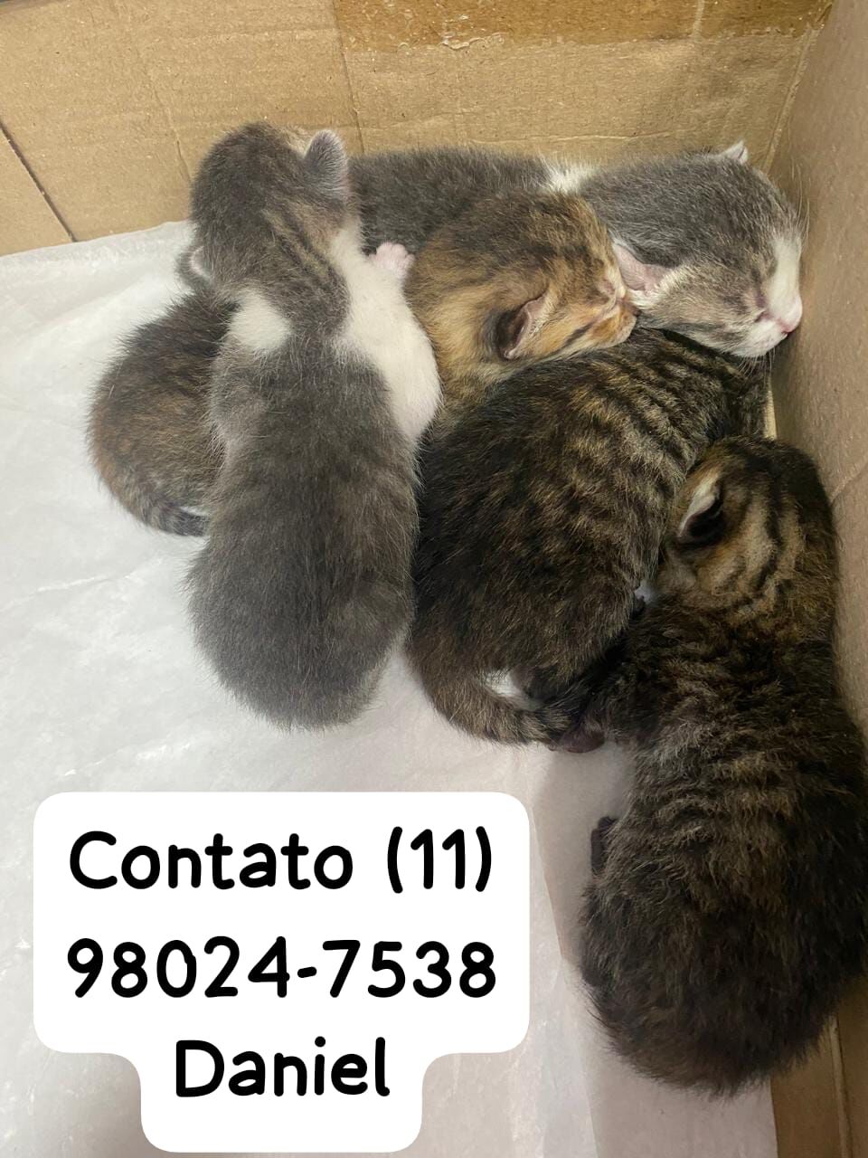 Recebi um pedido de ajuda, e preciso que alguém resgate 5 filhotes de gatos, ainda estão com os olhos fechados, a pessoa que resgatou não sabe cuidar e não pode cuidar pois trabalha muito